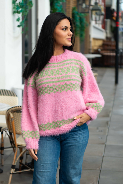 Mena Tröja ljusgrå/saffran/oliv (Fauna)