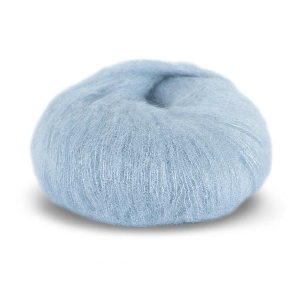 Kidsilk Erle är ett luftigt, borstat mohairgarn i lyxklass som blir till ljuvliga och mjuka klädesplagg. Använd bara detta garn eller prova att sticka det tillsammans med andra garnkvaliteter. Antingen enkelt eller dubbelt, som mönstereffekt tillsammans med ett spunnet ullgarn eller alpacka. Tänk på att den angivna masktätheten eller stickfastheten är vägledande och att du kan sticka Kidsilk Erle med tunnare eller tjockare stickor beroende på vilket resultat du vill ha.