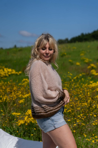 Iskaffetoppen är ljuvligt melerad i en riktig iskaffe-färg! Den är så härlig att ha på sig till exempel på morgonen i soffan eller så kan man styla upp den till fest! Den är lika mångsidig som den är skön!