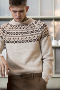 Slätstickning, rät, avig, mönster med flera färger. Plagget stickas runt nerifrån och upp, med raglanärmar. Klipp upp till sist och sticka framkanterna separat. Svårighetsgrad: Erfaren