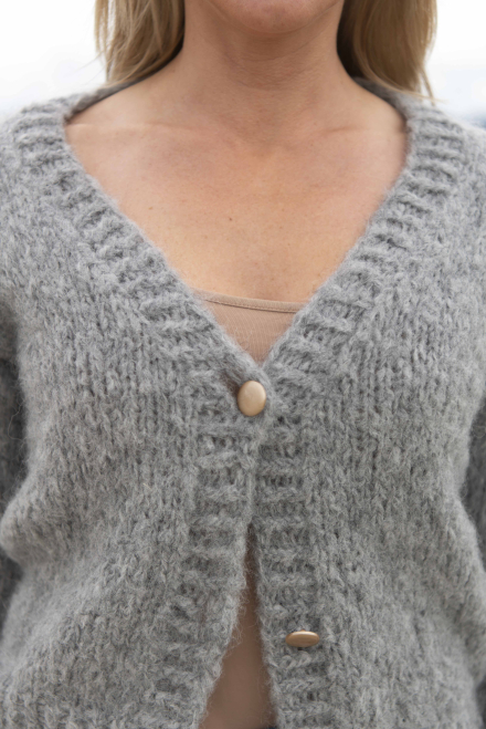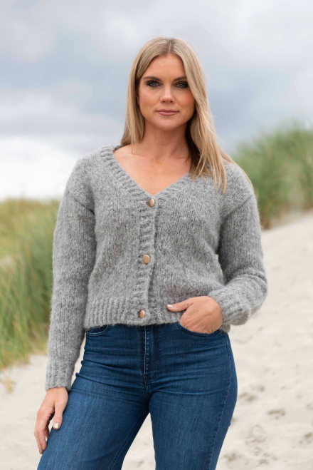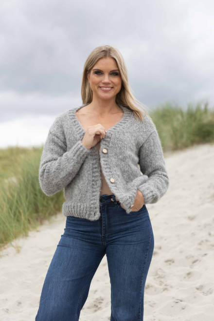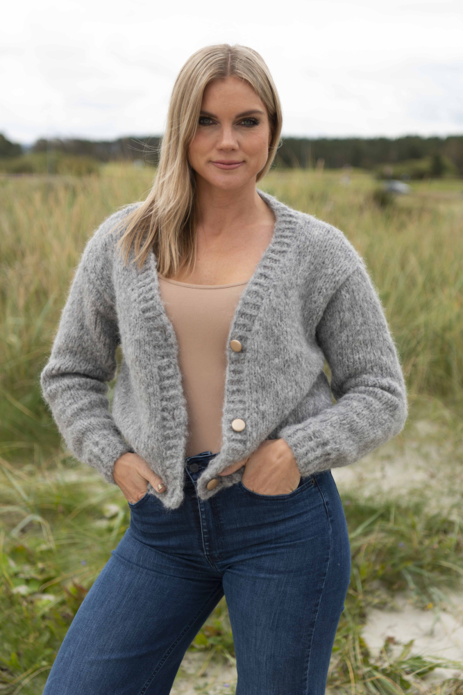 Shabana Kofta är en kort cardigan med v-hals och påsatta ärmar. Perfekt till både klänningar och byxor med hög midja!