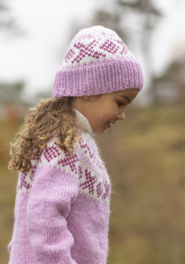 Du kan ändra färg på stickpaketet - välj först den storlek du vill sticka så visas färgvalen nedanför. OBS! Stickmönstret levereras alltid i stickpaketets originalfärger: Ljuslila och Vit