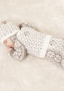 Du kan ändra färg på stickpaketet - välj först den storlek du vill sticka så visas färgvalen nedanför. OBS! Stickmönstret levereras alltid i stickpaketets originalfärger: Vit och Grågrön