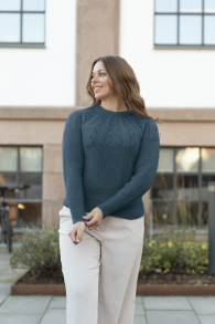 Slätstickning, rät, avig. Plagget stickas runt nerifrån och upp, delas vid ärmhålen och stickas fram och tillbaka. Ärmarna stickas separat och monteras på. Svårighetsgrad: Medel