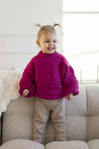 Så hittar du rätt storlek: Mät ett plagg du redan har som passar. Jämför måtten med stickmönstret. Välj storlek baserat på övervidd runt bröstet. Längden på både plagg och ärmar kan såklart göras längre eller kortare vid behov, kom bara ihåg att beställa extra garn om du vill öka längden!