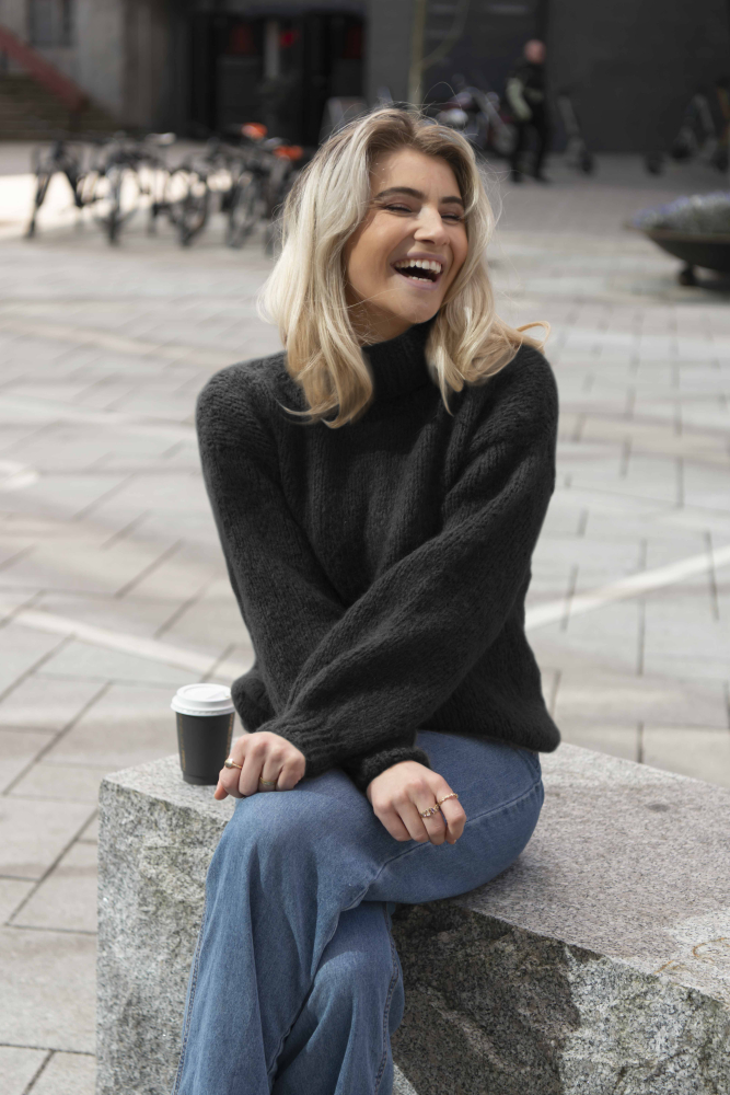 Furu Tröjan är en mjuk och härlig jumper med hög hals och påstickade ärmar – perfekt på kyliga vårmorgnar!