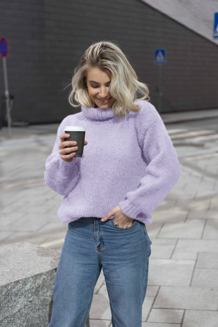 Furu Tröjan är en mjuk och härlig jumper med hög hals och påstickade ärmar – perfekt på kyliga vårmorgnar!