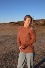 Namibia-tröjan är en ljuvlig, mönstrad jumper i vårt nya garn Tynn Merino – ett härligt, non-superwashbehandlat garn i mjukaste merinoull!