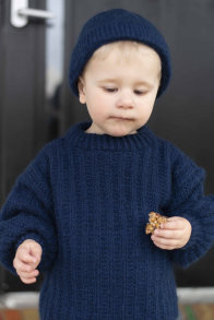 Du kan ändra färg på stickpaketet - välj först den storlek du vill sticka så visas färgvalen nedanför. OBS! Stickmönstret levereras alltid i stickpaketets originalfärger: marinblå och vit, mörkblå och vit
