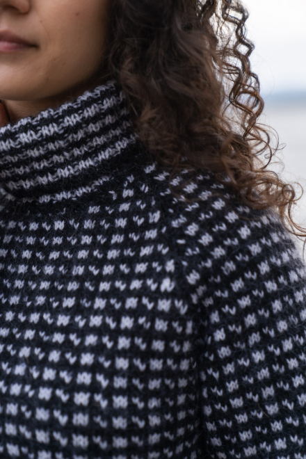 Du kan ändra färg på stickpaketet - välj först den storlek du vill sticka så visas färgvalen nedanför. OBS! Stickmönstret levereras alltid i stickpaketets originalfärger: svart, vit, svart och vit