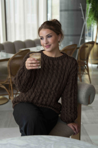 Du kan ändra färg på stickpaketet - välj först den storlek du vill sticka så visas färgvalen nedanför. OBS! Stickmönstret levereras alltid i stickpaketets originalfärger: mörkbrun, offwhite, kamel, bränd koppar