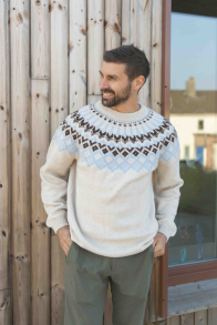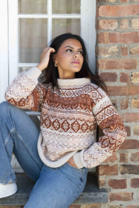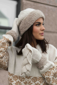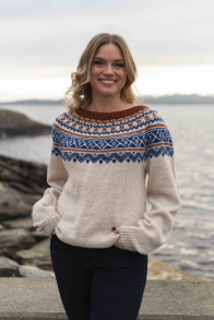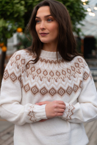 Du kan ändra färg på stickpaketet - välj först den storlek du vill sticka så visas färgvalen nedanför. OBS! Stickmönstret levereras alltid i stickpaketets originalfärger: Ljusbeige, mörkbrun och bordeaux