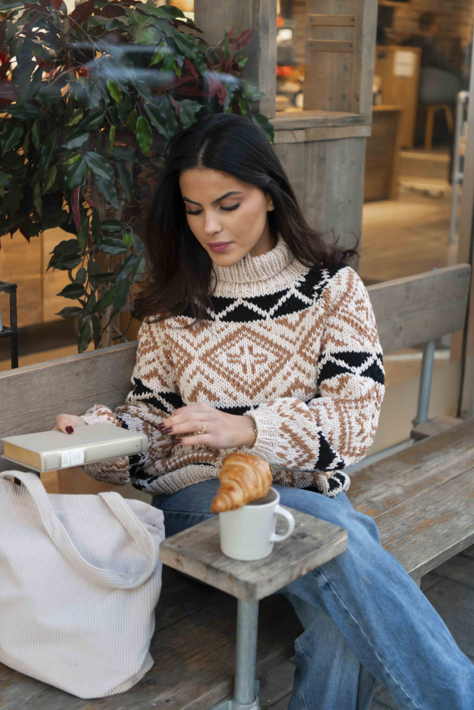 Du kan ändra färg på stickpaketet - välj först den storlek du vill sticka så visas färgvalen nedanför. OBS! Stickmönstret levereras alltid i stickpaketets originalfärger: ljusbeige, svart och nougat