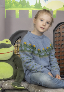 Du kan ändra färg på stickpaketet - välj först den storlek du vill sticka så visas färgvalen nedanför. OBS! Stickmönstret levereras alltid i stickpaketets originalfärger: blå, mellanblå, vit, ljusblå, ljus petrol, gul och ljus ljung