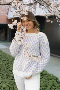 Du kan ändra färg på stickpaketet - välj först den storlek du vill sticka så visas färgvalen nedanför. OBS! Stickmönstret levereras alltid i stickpaketets originalfärger: vit, ljuslila och ljusbrun