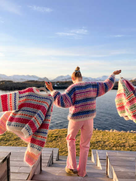 Du kan ändra färg på stickpaketet - välj först den storlek du vill sticka så visas färgvalen nedanför. OBS! Stickmönstret levereras alltid i stickpaketets originalfärger: soft pink, light yellow, white, light lavender, mint green och fuchsia.