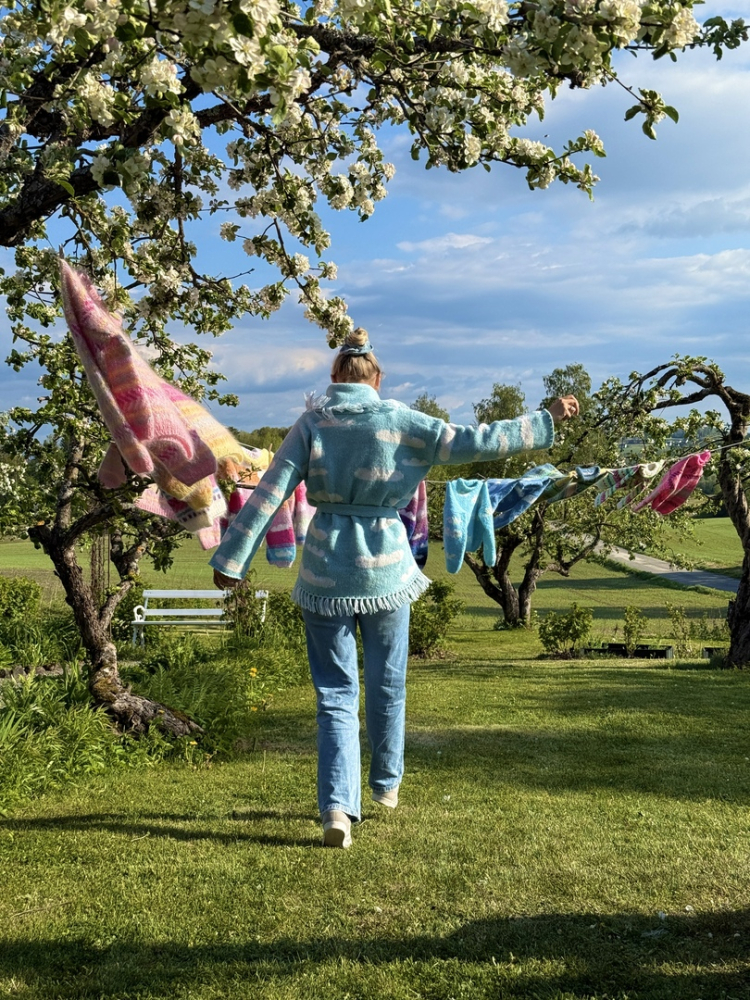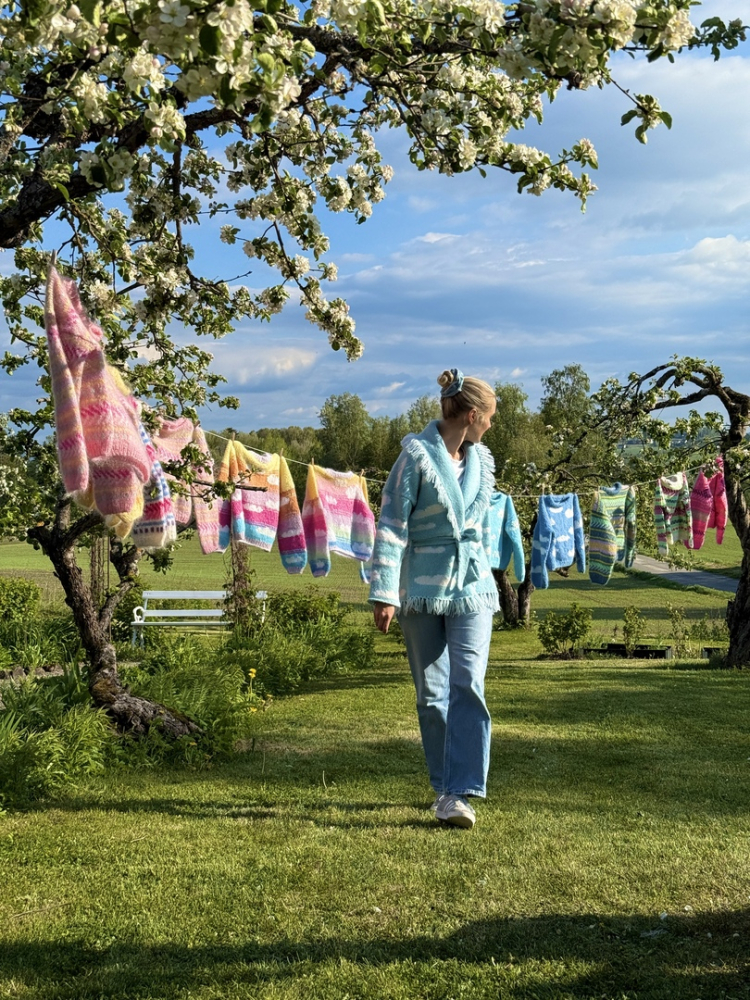 20 m x 28 varv slätstickning på sticka nr 4 = 10 x 10 cm