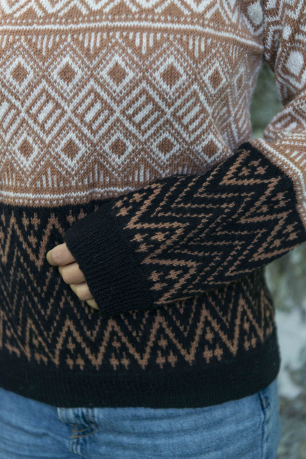 Du kan ändra färg på stickpaketet - välj först den storlek du vill sticka så visas färgvalen nedanför. OBS! Stickmönstret levereras alltid i stickpaketets originalfärger: svart, nougat, ljusbeige melange