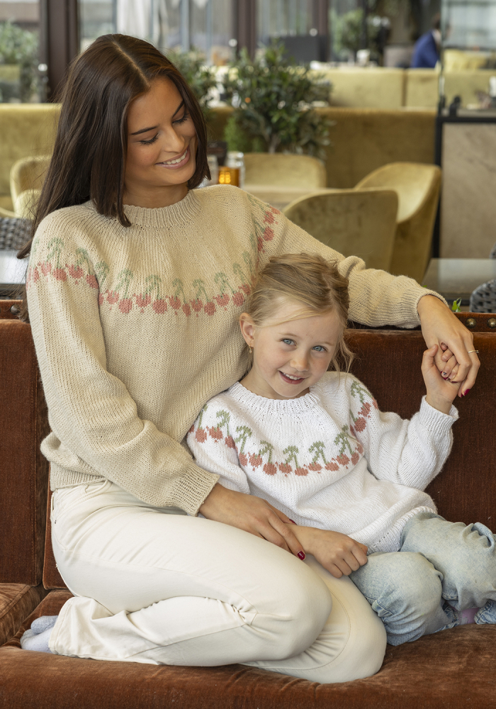 Du kan ändra färg på stickpaketet - välj först den storlek du vill sticka så visas färgvalen nedanför. OBS! Stickmönstret levereras alltid i stickpaketets originalfärger: beige, ljus mintgrön och korall
