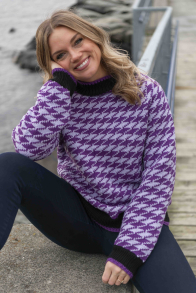 Du kan ändra färg på stickpaketet - välj först den storlek du vill sticka så visas färgvalen nedanför. OBS! Stickmönstret levereras alltid i stickpaketets originalfärger: ljuslila och ljus hallon