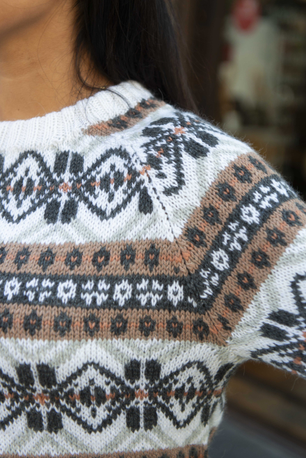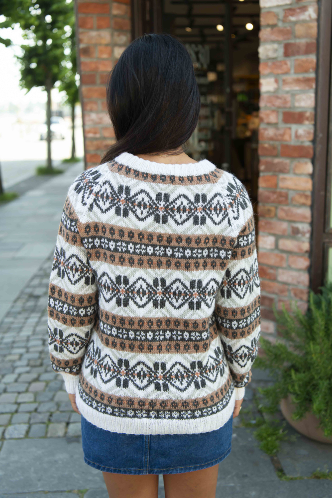 Du kan ändra färg på stickpaketet - välj först den storlek du vill sticka så visas färgvalen nedanför. OBS! Stickmönstret levereras alltid i stickpaketets originalfärger: offwhite, grafitgrå, mocka mousse, dov aprikos och ljusgrå melange