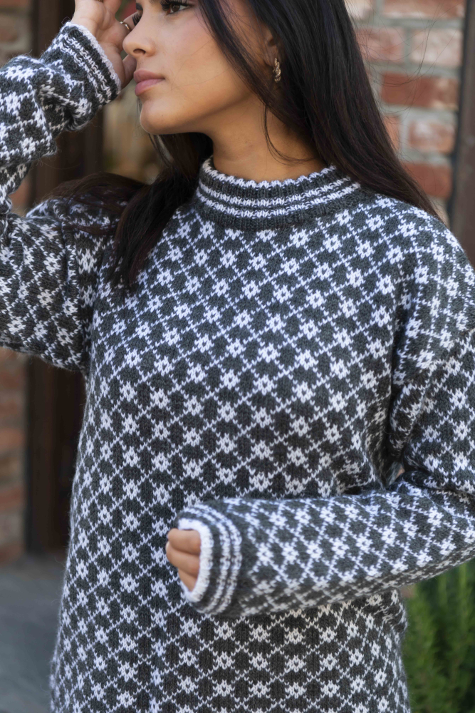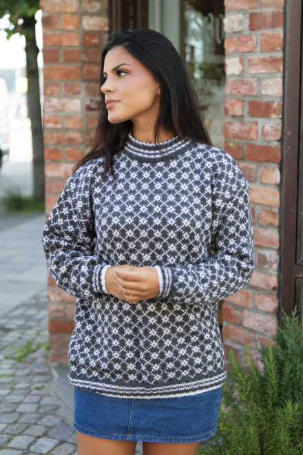 Du kan ändra färg på stickpaketet - välj först den storlek du vill sticka så visas färgvalen nedanför. OBS! Stickmönstret levereras alltid i stickpaketets originalfärger: grafitgrå och vit