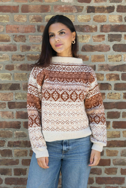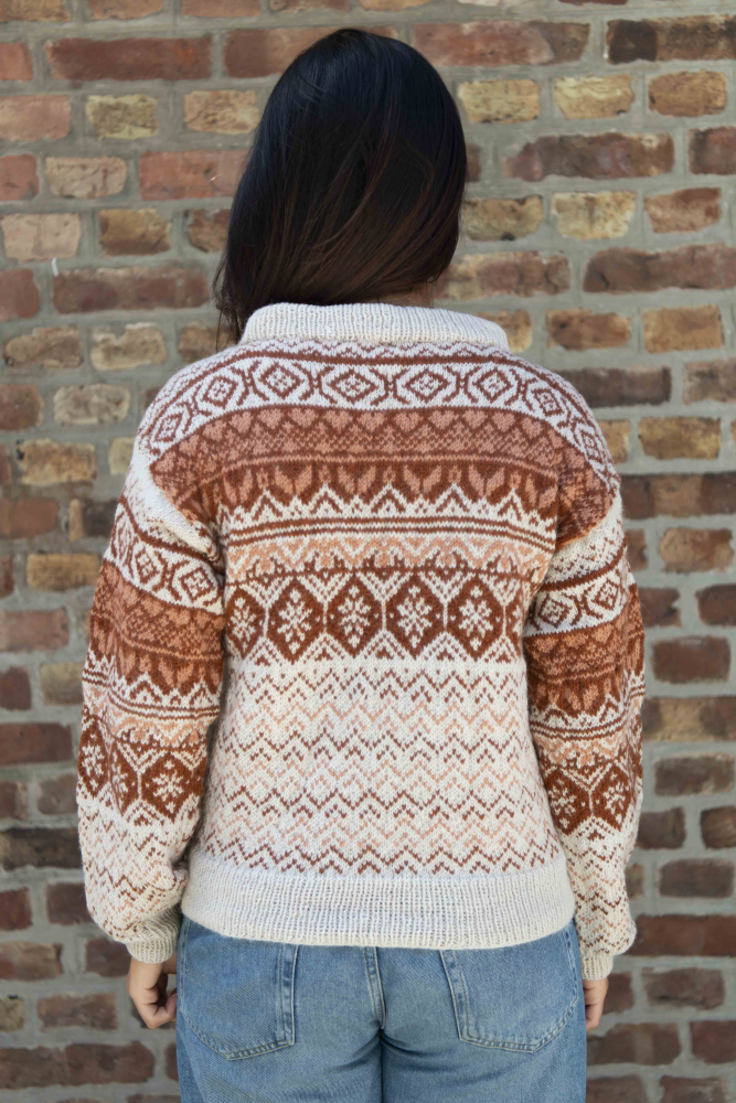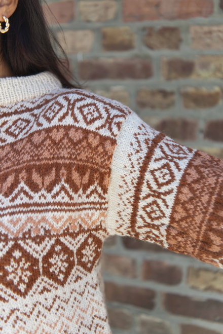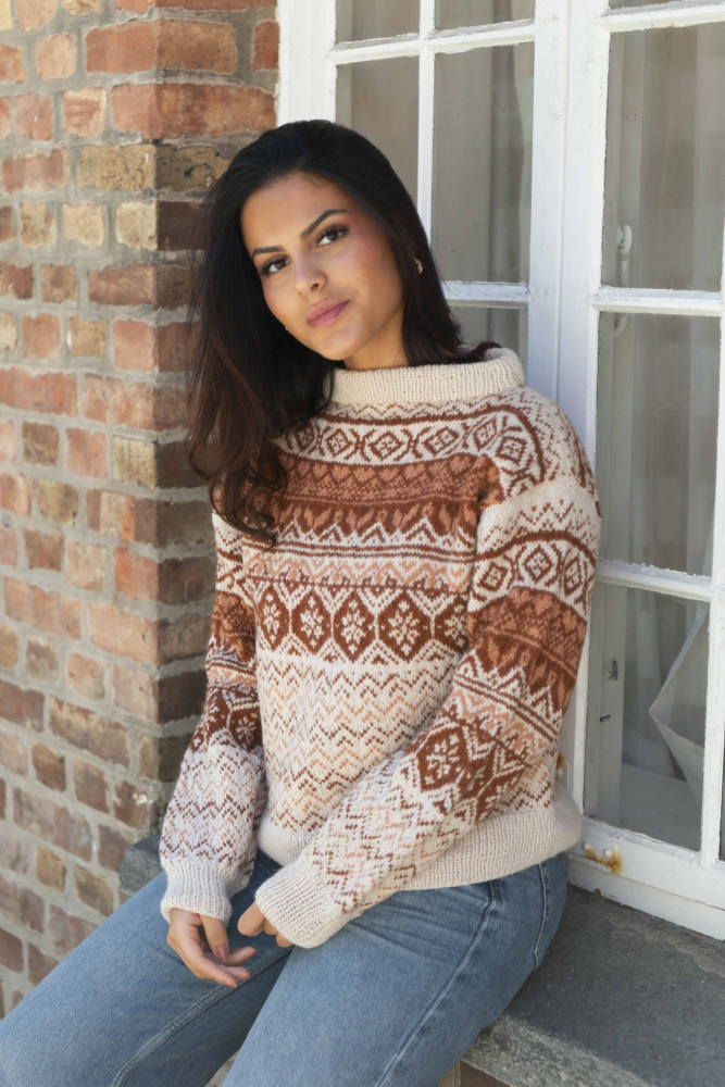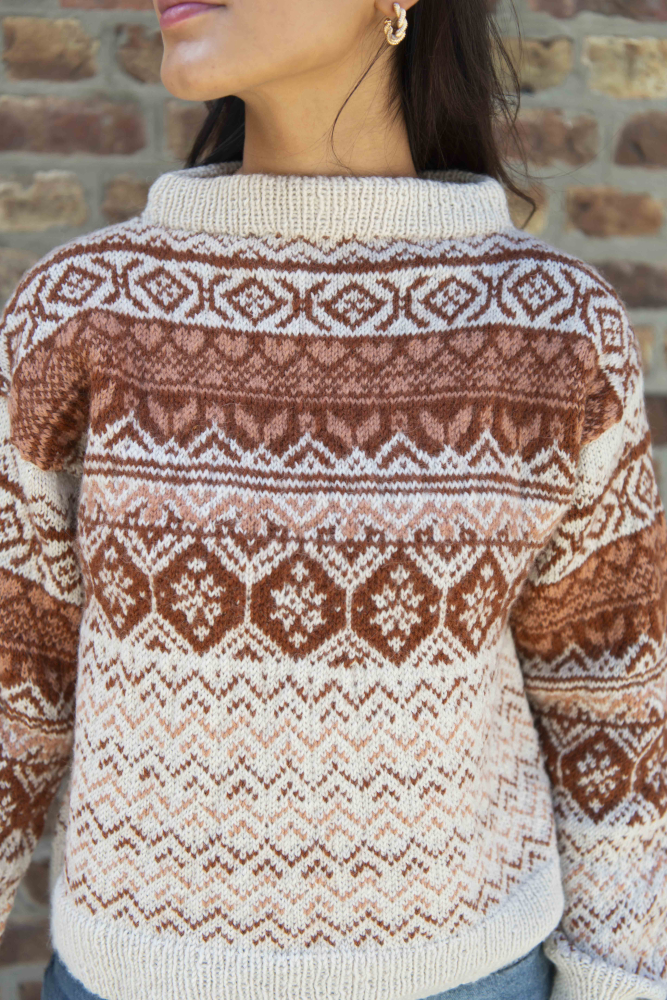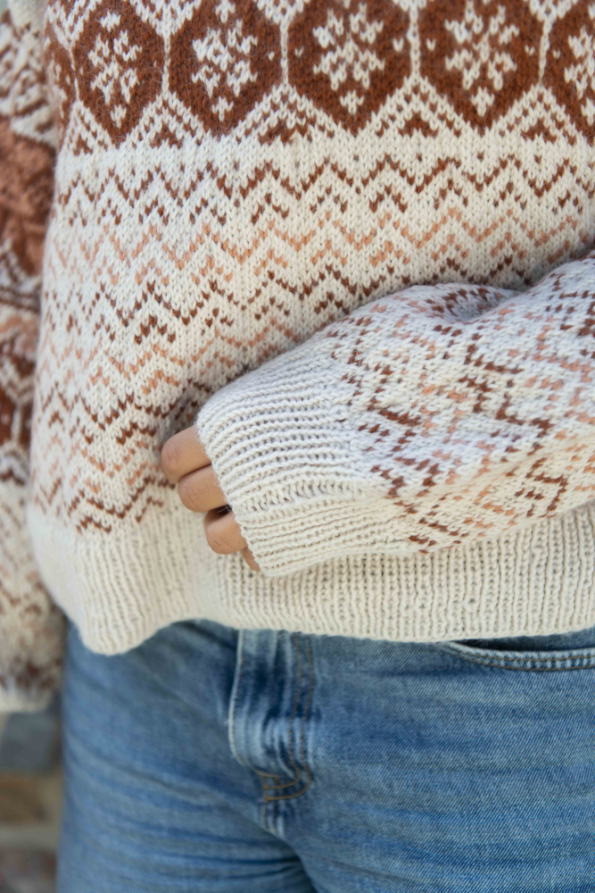 Du kan ändra färg på stickpaketet - välj först den storlek du vill sticka så visas färgvalen nedanför. OBS! Stickmönstret levereras alltid i stickpaketets originalfärger: ljusbeige melange, koppar och dov aprikos