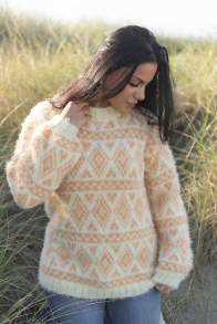 Du kan ändra färg på stickpaketet - välj först den storlek du vill sticka så visas färgvalen nedanför. OBS! Stickmönstret levereras alltid i stickpaketets originalfärger: aprikos och dov aprikos