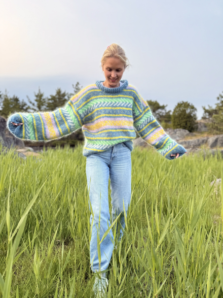 Här finns även information om vilka stickor och eventuella tillbehör du behöver till detta härliga plagg.
