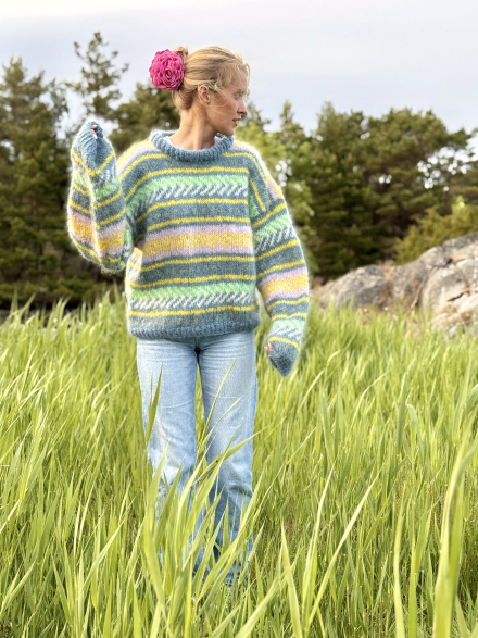 Du kan ändra färg på stickpaketet - välj först den storlek du vill sticka så visas färgvalen nedanför. OBS! Stickmönstret levereras alltid i stickpaketets originalfärger.