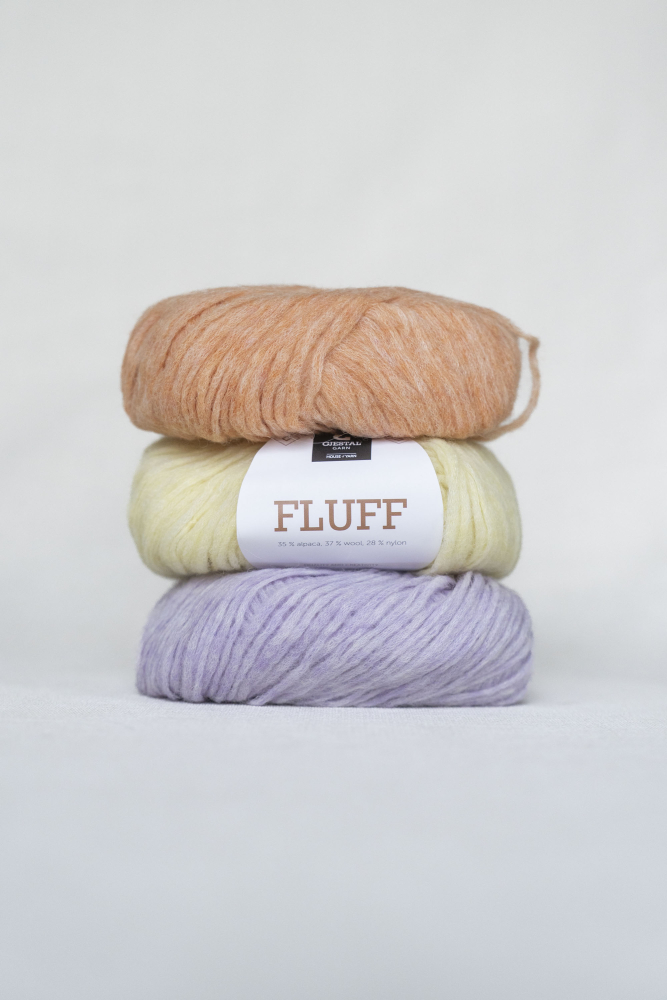 Fluff är ett supermjukt, lätt och luftigt blowgarn från Gjestal, som skapar vackra plagg med ett härligt fall. I detta garn blandas fibrer av alpacka, ull och nylon för att skapa en spännande struktur. Den fint borstade ytan gör garnet underbart mjukt mot huden.