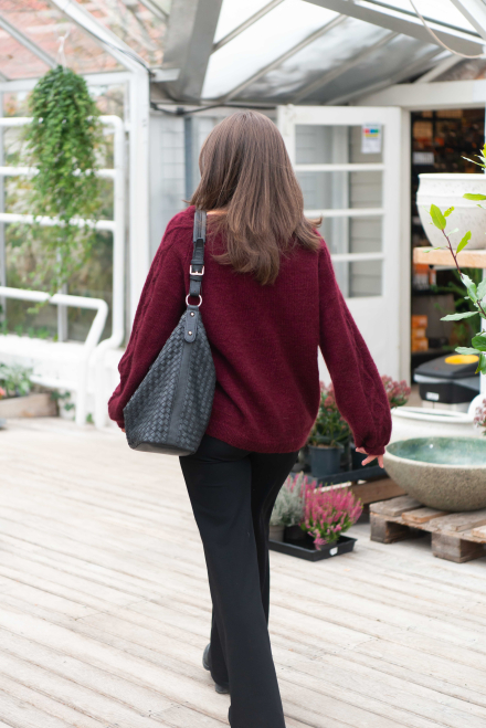 Du kan ändra färg på stickpaketet - välj först den storlek du vill sticka så visas färgvalen nedanför. OBS! Stickmönstret levereras alltid i stickpaketets originalfärg: bordeaux och mörkröd