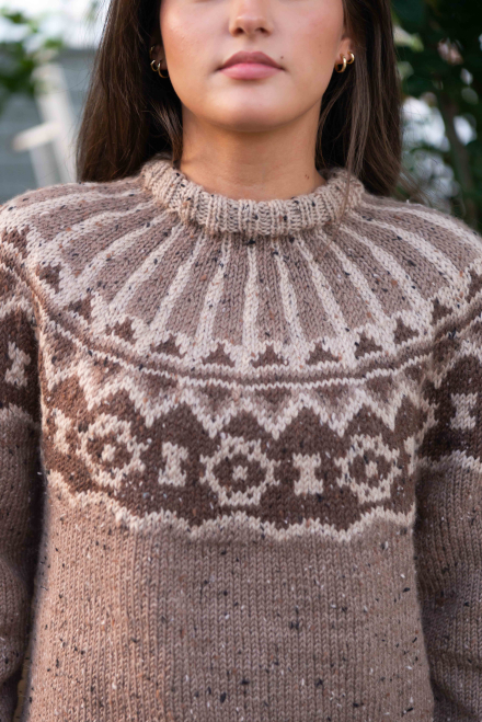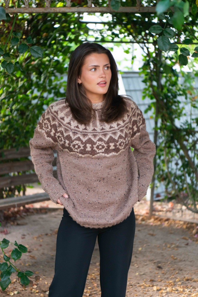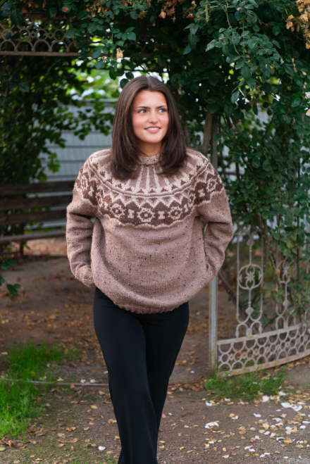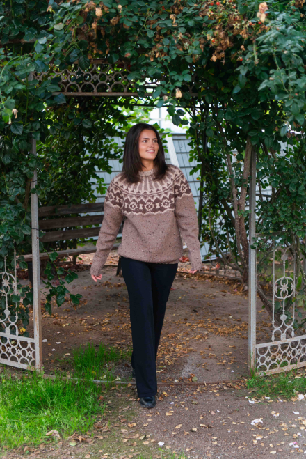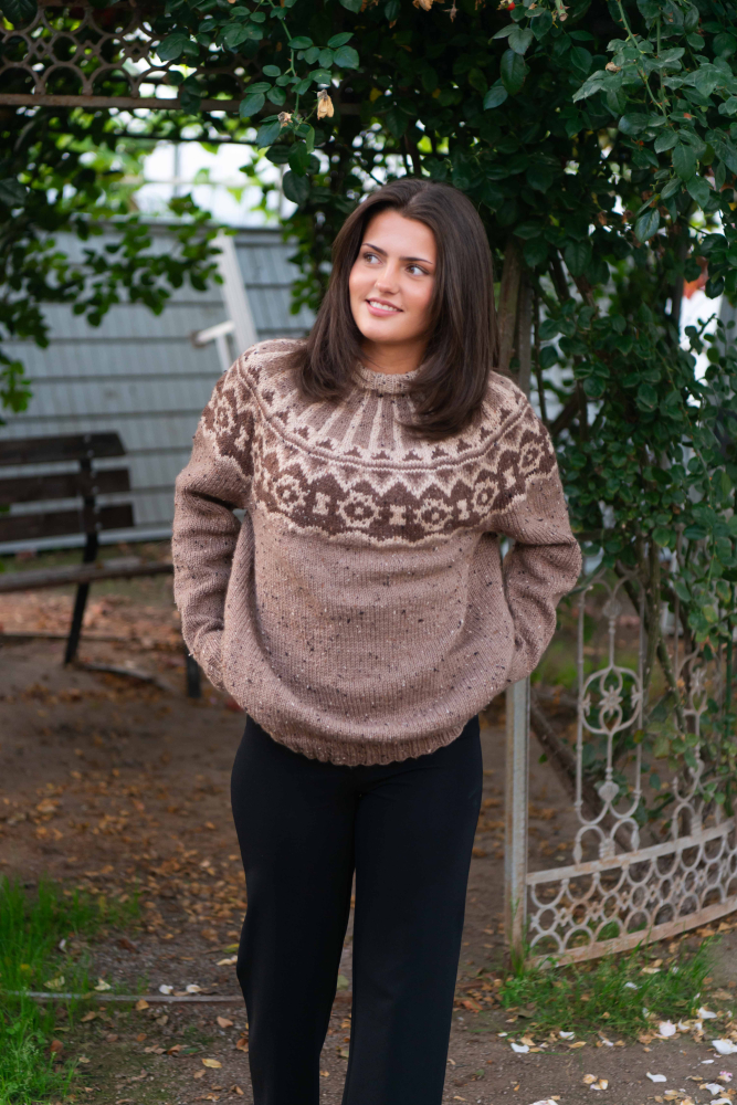 Du kan ändra färg på stickpaketet - välj först den storlek du vill sticka så visas färgvalen nedanför. OBS! Stickmönstret levereras alltid i stickpaketets originalfärg: beige, ljusbeige och brun