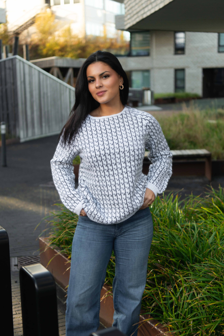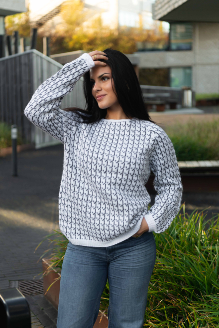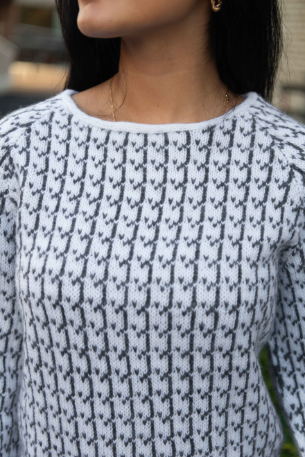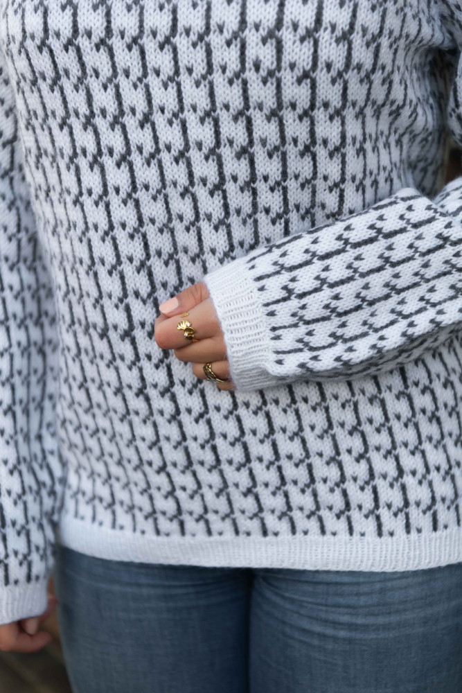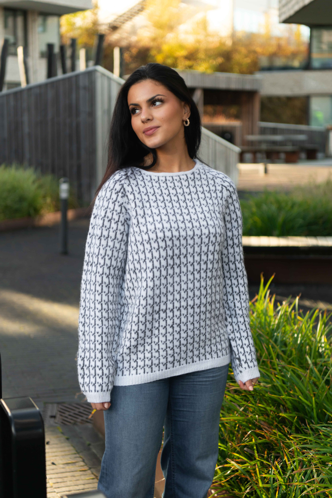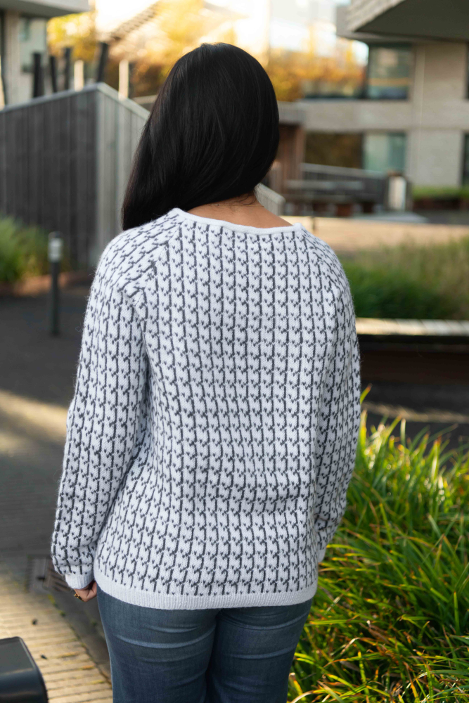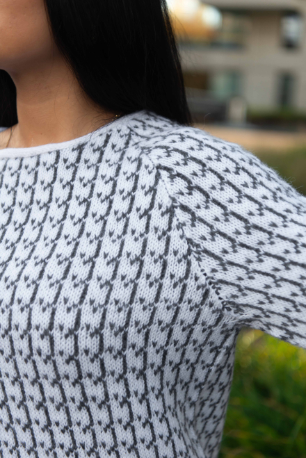 Du kan ändra färg på stickpaketet - välj först den storlek du vill sticka så visas färgvalen nedanför. OBS! Stickmönstret levereras alltid i stickpaketets originalfärg: vit och grafitgrå