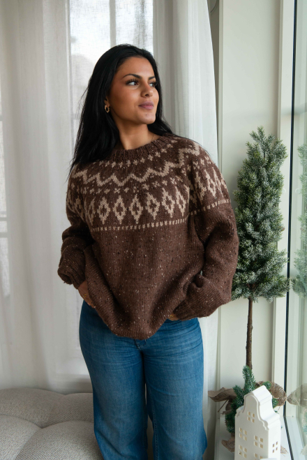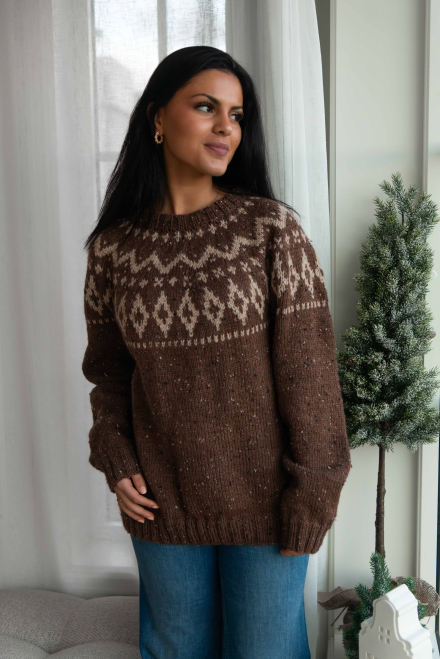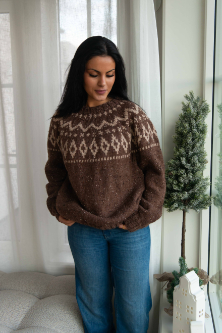 Du kan ändra färg på stickpaketet - välj först den storlek du vill sticka så visas färgvalen nedanför. OBS! Stickmönstret levereras alltid i stickpaketets originalfärg: brun och ljusbeige