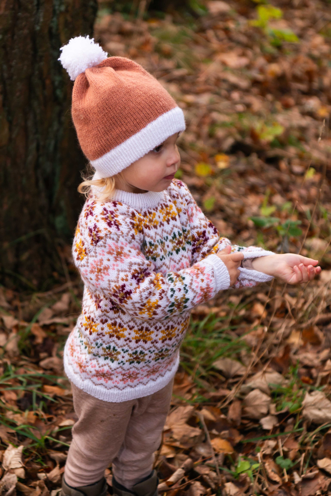 Du kan ändra färg på stickpaketet - välj först den storlek du vill sticka så visas färgvalen nedanför. OBS! Stickmönstret levereras alltid i stickpaketets originalfärg: vit, mocka mousse, ljus korall, aprikos, mörk oliv, vårgrön, bränd koppar, solros, saffran, bordeaux