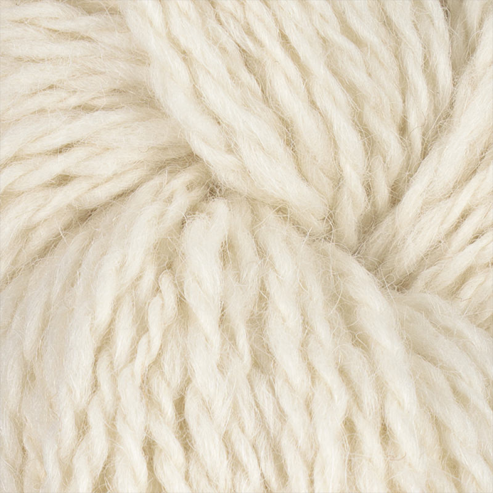 Garnet produceras genom att karda fibrerna före spinning, vilket ger ett lätt, luftigt garn med utmärkta isolerande egenskaper.