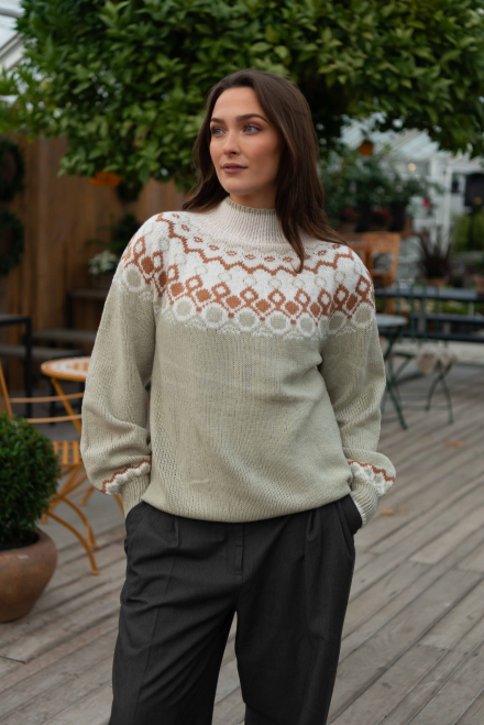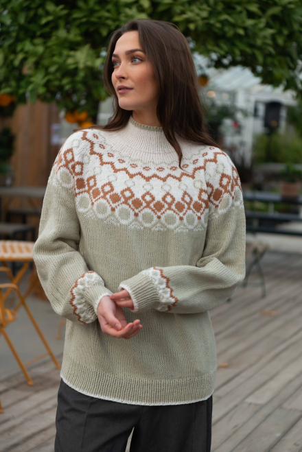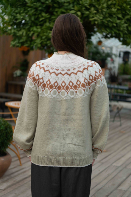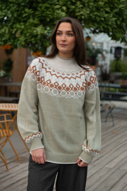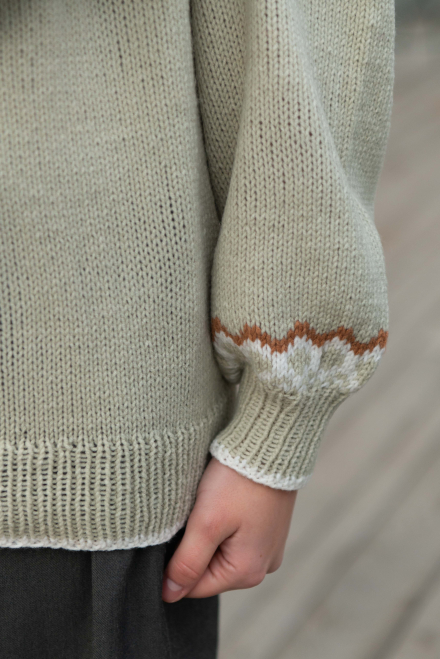 Du kan ändra färg på stickpaketet - välj först den storlek du vill sticka så visas färgvalen nedanför. OBS! Stickmönstret levereras alltid i stickpaketets originalfärg: mineralgrå, vit och nougat