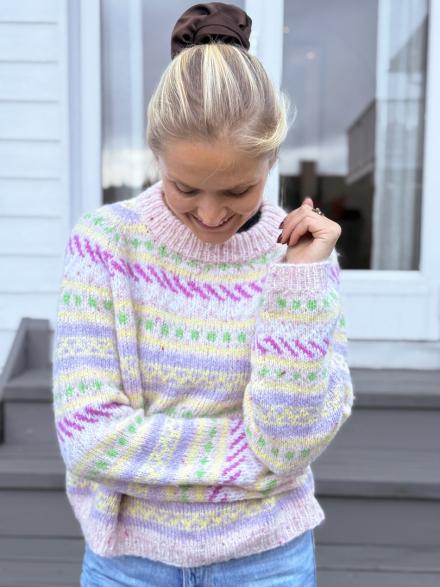 Du kan ändra färg på stickpaketet - välj först den storlek du vill sticka så visas färgvalen nedanför. OBS! Stickmönstret levereras alltid i stickpaketets originalfärger: pink dots, light yellow, white, light lilac, apple mint och fuchsia