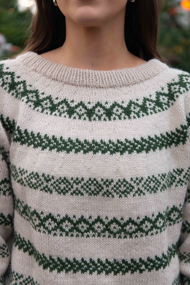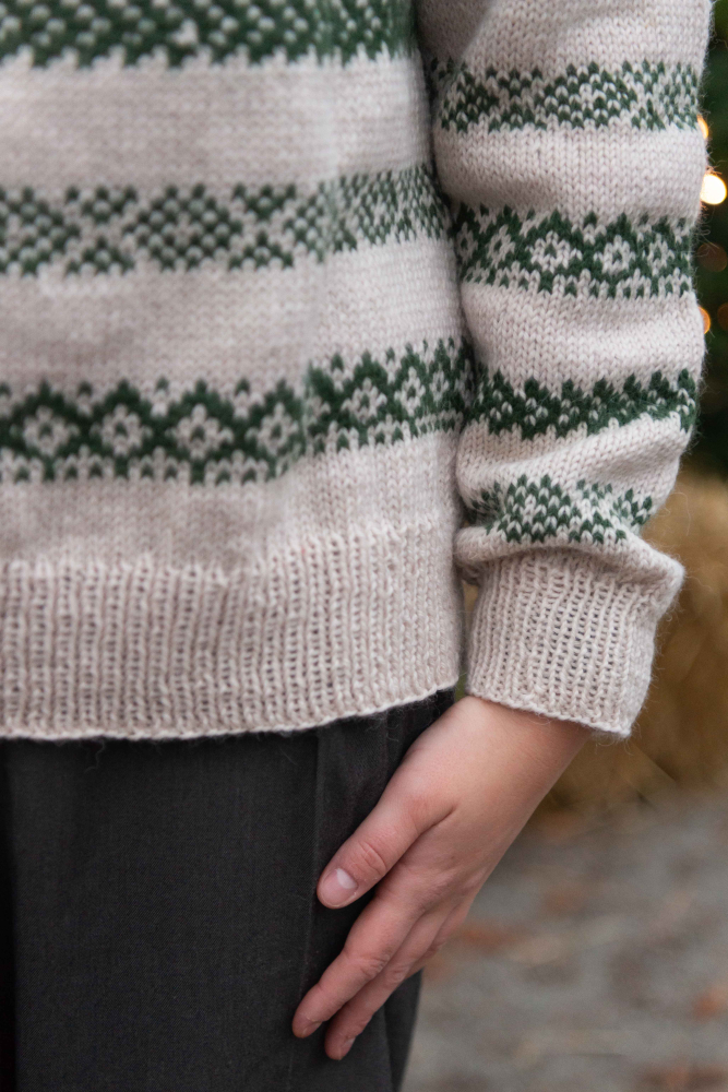 24 m slätstickning med mönster på bredden på sticka nr 4 = 10 cm
