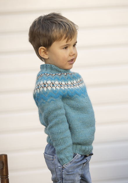 Du kan ändra färg på stickpaketet - välj först den storlek du vill sticka så visas färgvalen nedanför. OBS! Stickmönstret levereras alltid i stickpaketets originalfärger: turkos, mörk turkos, naturvit och brun