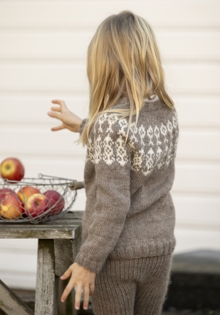 Du kan ändra färg på stickpaketet - välj först den storlek du vill sticka så visas färgvalen nedanför. OBS! Stickmönstret levereras alltid i stickpaketets originalfärger: beige och naturvit