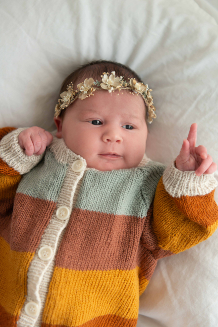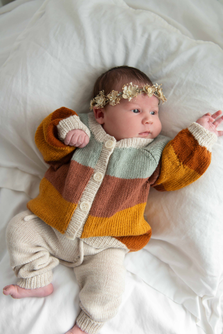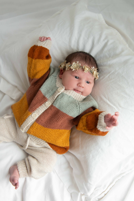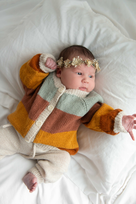 Alla våra stickpaket innehåller stickmönster och total garnåtgång för önskad storlek förutsatt att angivna mått och stickfasthet följs. Stickor, knappar och annat tillbehör köps separat.
