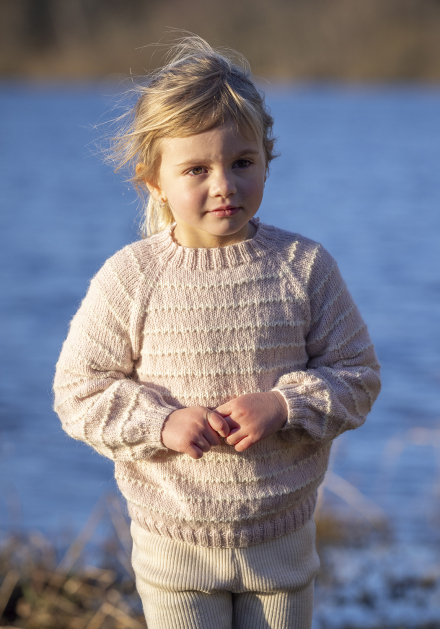Du kan ändra färg på stickpaketet - välj först den storlek du vill sticka så visas färgvalen nedanför. OBS! Stickmönstret levereras alltid i stickpaketets originalfärger: puderrosa och naturvit