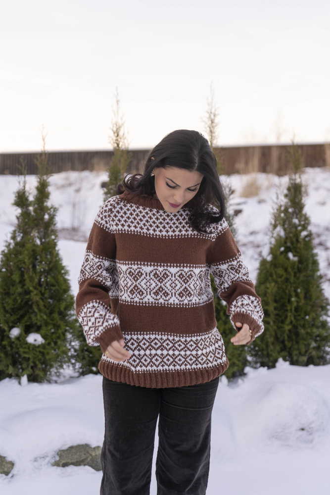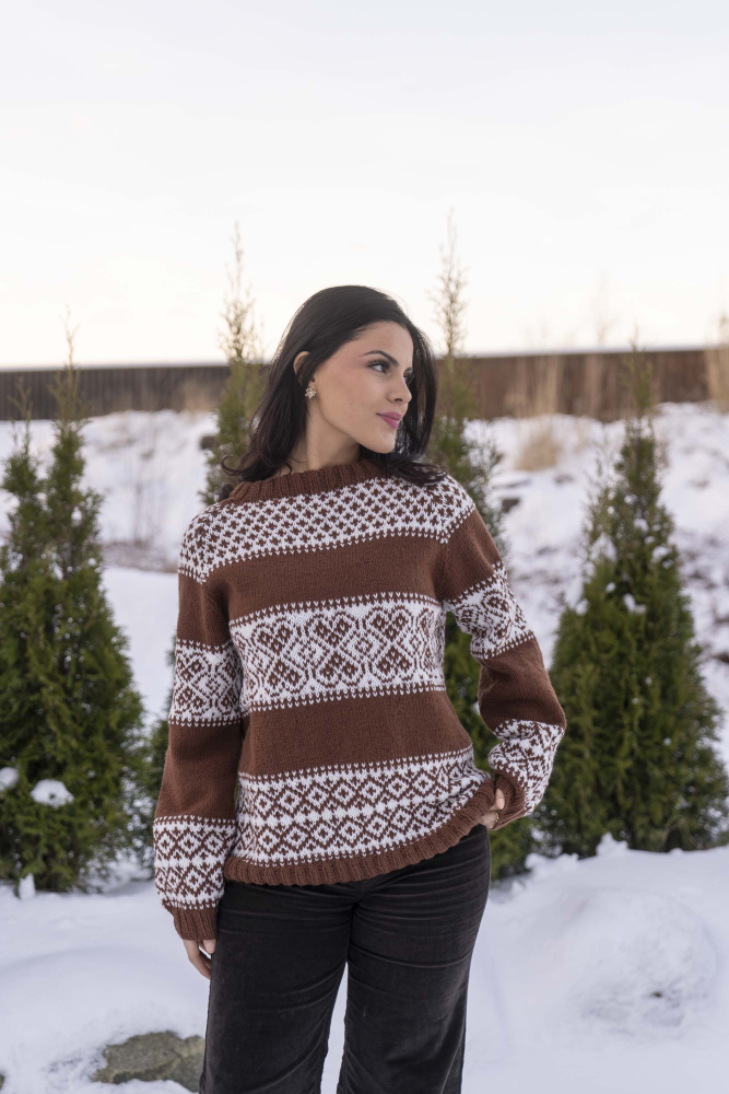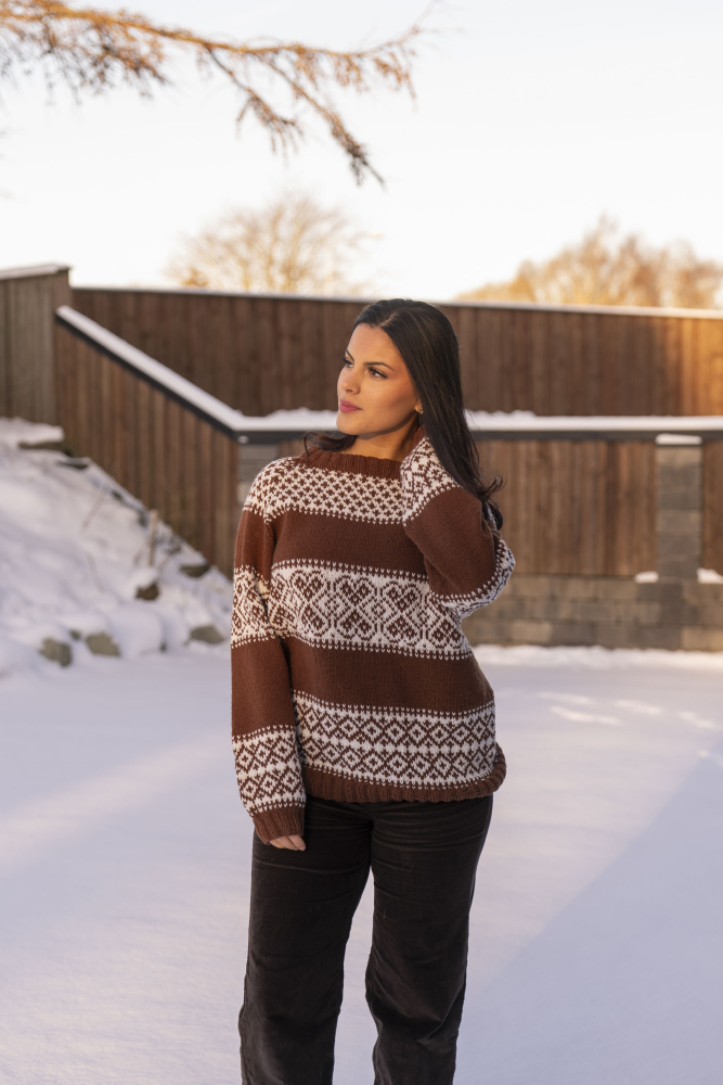 Du kan ändra färg på stickpaketet - välj först den storlek du vill sticka så visas färgvalen nedanför. OBS! Stickmönstret levereras alltid i stickpaketets originalfärg: cappuccino och vit