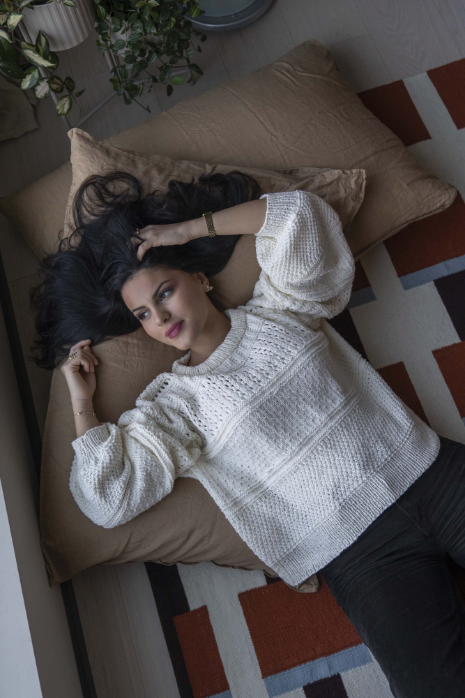 20 m slätstickning på sticka nr 4 = 10 cm