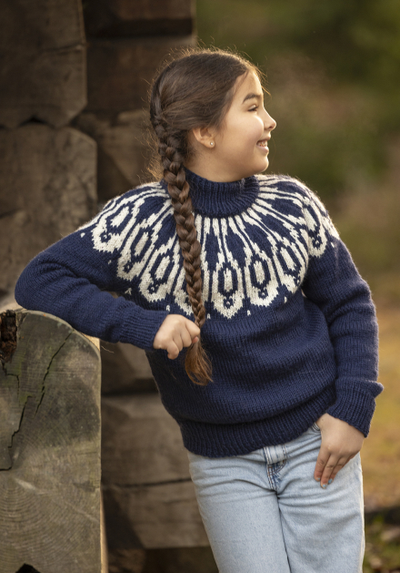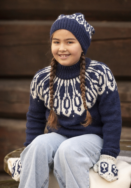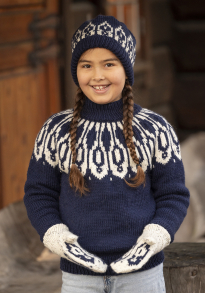 Du kan ändra färg på stickpaketet - välj först den storlek du vill sticka så visas färgvalen nedanför. OBS! Stickmönstret levereras alltid i stickpaketets originalfärg: marin och svart print