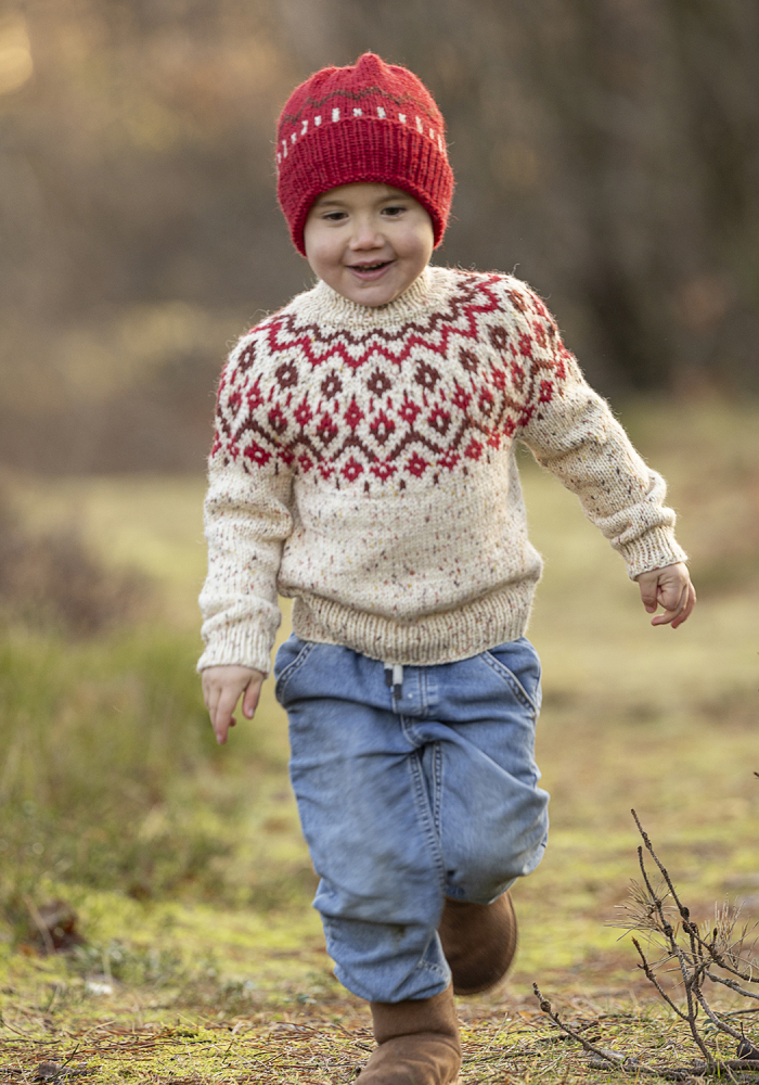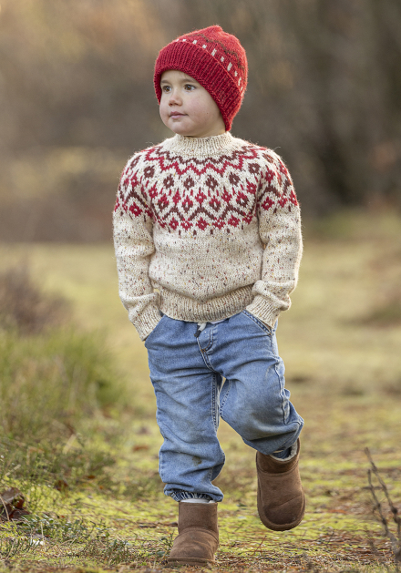 Du kan ändra färg på stickpaketet - välj först den storlek du vill sticka så visas färgvalen nedanför. OBS! Stickmönstret levereras alltid i stickpaketets originalfärg: röd print, rosenröd och röd