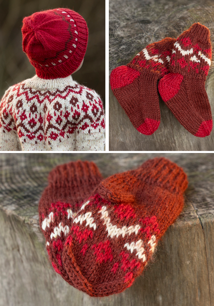 Du kan ändra färg på stickpaketet - välj först den storlek du vill sticka så visas färgvalen nedanför. OBS! Stickmönstret levereras alltid i stickpaketets originalfärg: röd print, rosenröd och röd
