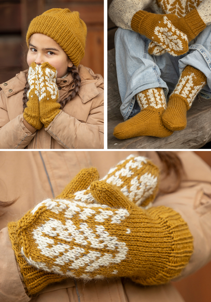 Du kan ändra färg på stickpaketet - välj först den storlek du vill sticka så visas färgvalen nedanför. OBS! Stickmönstret levereras alltid i stickpaketets originalfärg: brun print och senap